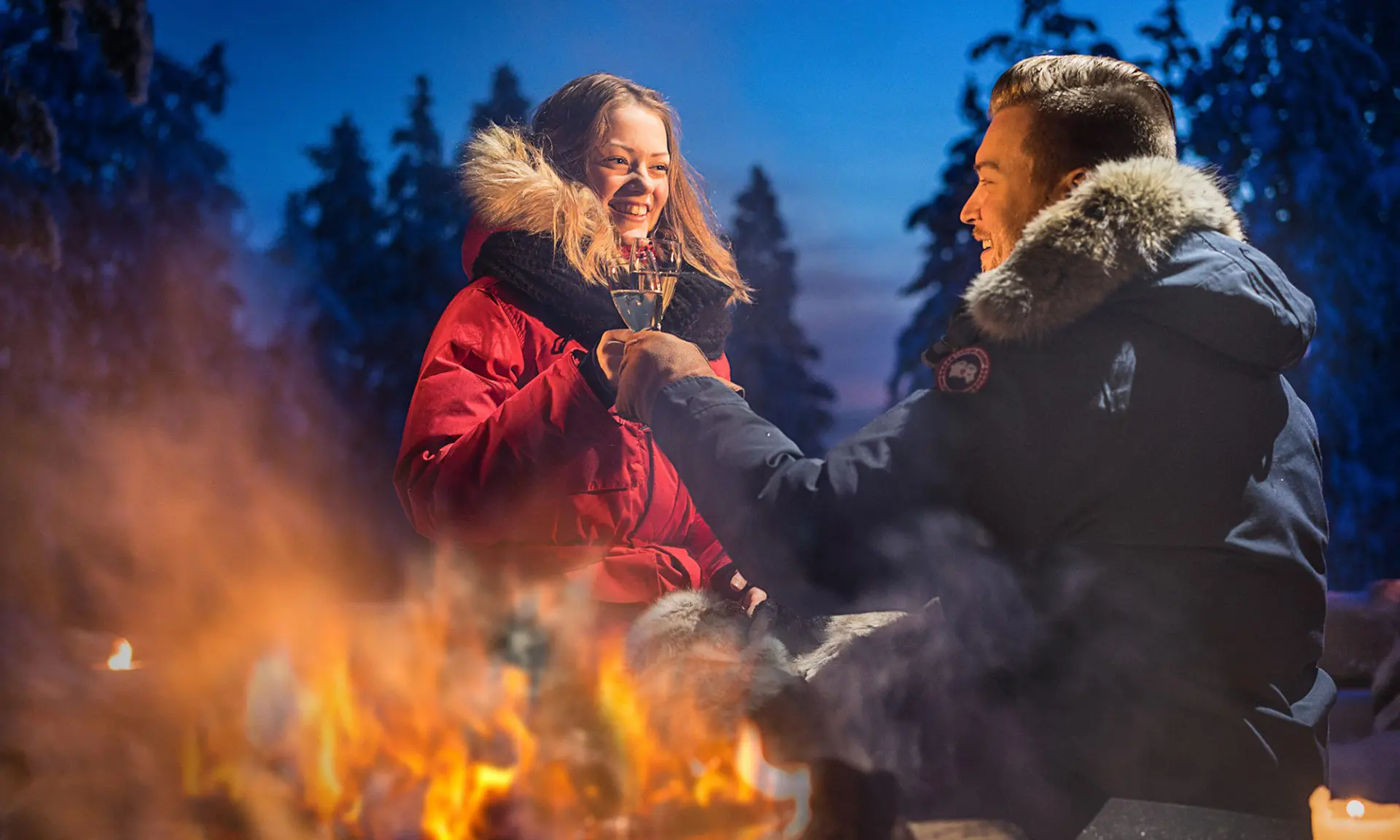 Nauttikaa laavulla lämpimiin huopiin kääriytyneenä avotulen loisteesta ja näkymästä pohjoiselle taivaalle. Käytössänne on yksityiskokki, joka valmistaa ja tarjoilee teille valitsemanne menun. Varustaudu lämpimillä vaatteilla!